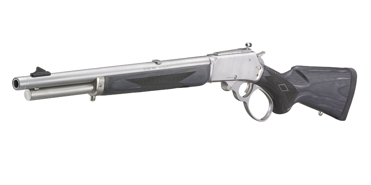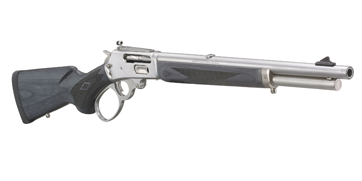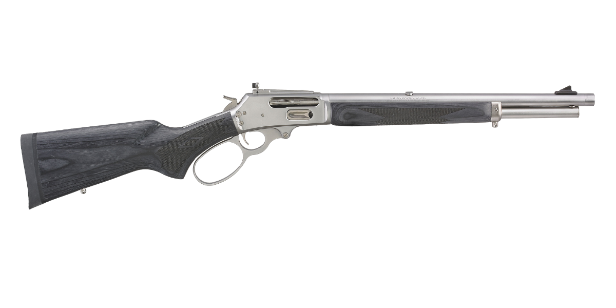 Based on the same platform as the Marlin 1895 SBL, the Marlin 1895 Trapper boasts a shorter, more maneuverable 16" barrel, offers a bead-blasted, satin stainless finish for low glare in the field and rapid acquisition with the adjustable Skinner Sights™ receiver-mounted peep sight system. This American-made lever-action rifle was manufactured with great pride and attention to detail. You can expect the same time-honoured design as the traditional 1895, combined with Ruger's trusted reputation for producing high-quality, reliable firearms.